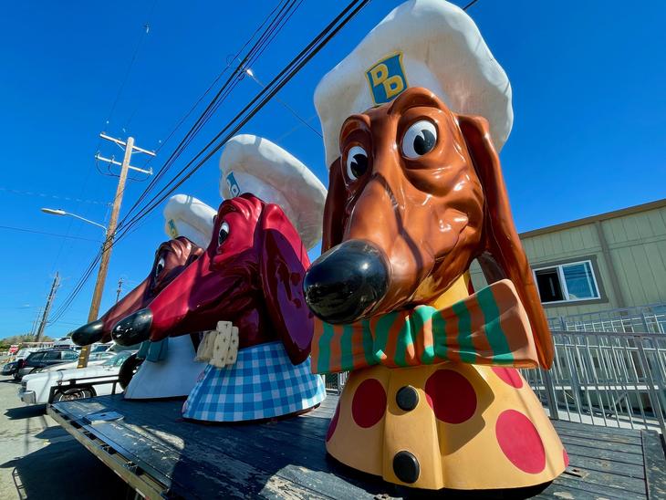 思わず叫んでしまった、偶然発見!写真で見たことある『ドギー・ダイナー・ヘッド(Doggie Diner Heads)』これ本物です!!ドギーダイナーは、1948年イーストベイ・オークランドでオープンしたアメリカンダイナーで、サンフランシスコを中心に22ヶ所のチェーン店でした。高さが約2mのダックスフンドにシェフ帽子と蝶ネクタイがトレードマークでした。残念ながら今はサインだけになってしまいましたが、2006年サンフランシスコ市のランドマークとして"最後のドギーダイナーヘッド(The Last Doggie Diner Head)"が、サンフランシスコ動物園近く、Sloat BLVD & 45th Aveにあります。お近くに行ったらその大きさを見て下さい。→遠くからでも判別できるようにサインはとにかく大きくするのが車社会の定説。