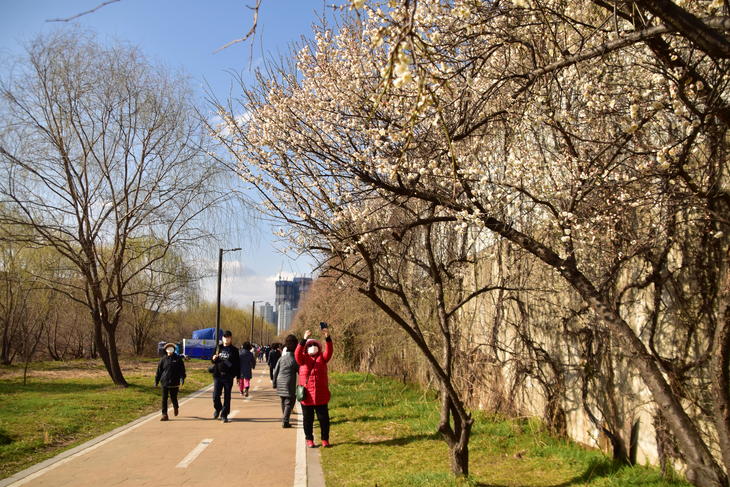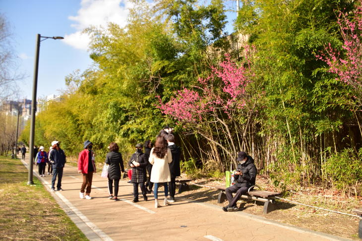 この梅並木道の側には清渓川が流れ、とても景観が良いです。梅並木の向かいには桜並木があるので、もう少し経ったら、桜のお花見ができそうです。