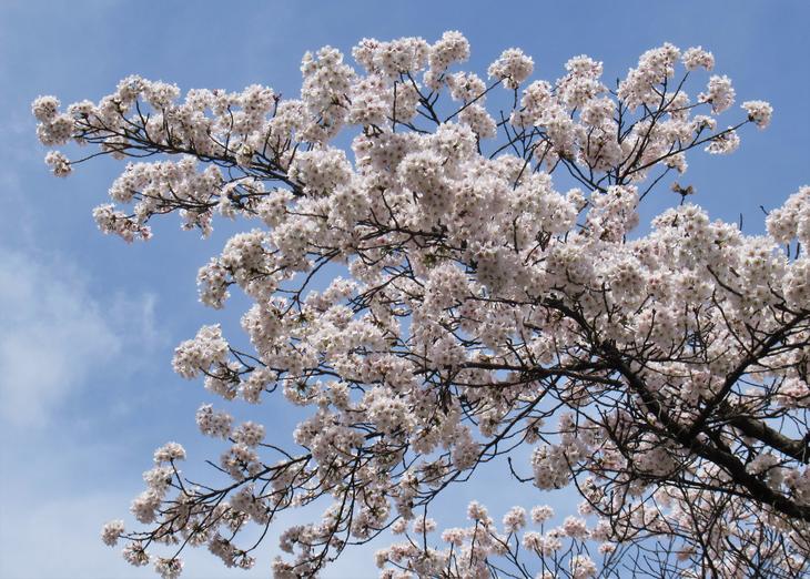 境内には60本ものソメイヨシノほか、カワヅザクラ、ヒガンザクラ、ウコンザクラなど種類もいろいろ。大木も目立ちました。
