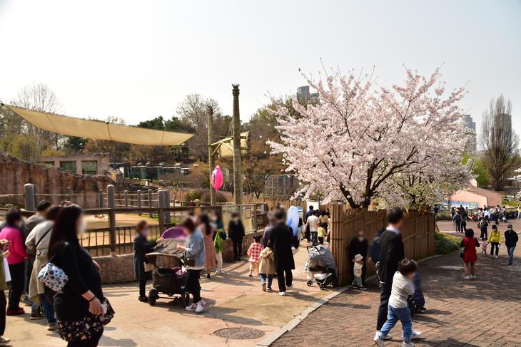 動物園から正門へ向かう道は華やかなお花見ゾーンになっています。