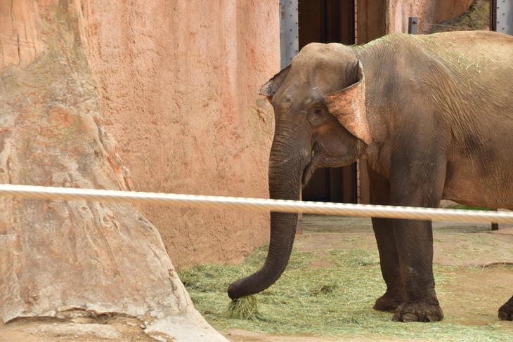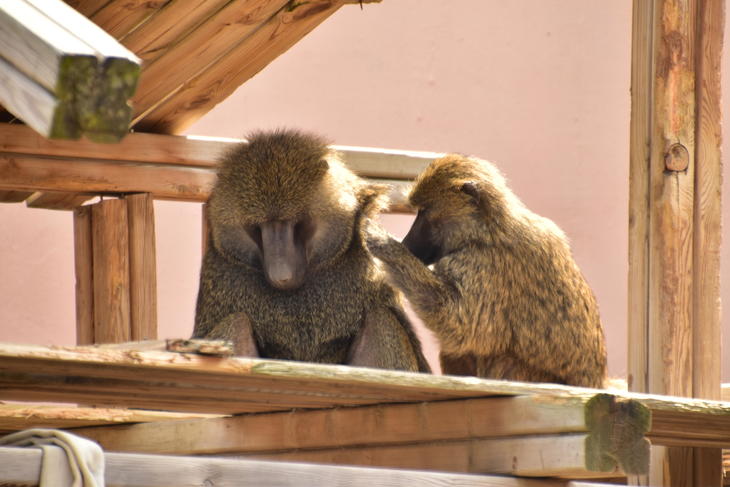 エサを一生懸命につかもうとするゾウや仲間で毛づくろいをしているマントヒヒなど多くの動物が間近で見られます。