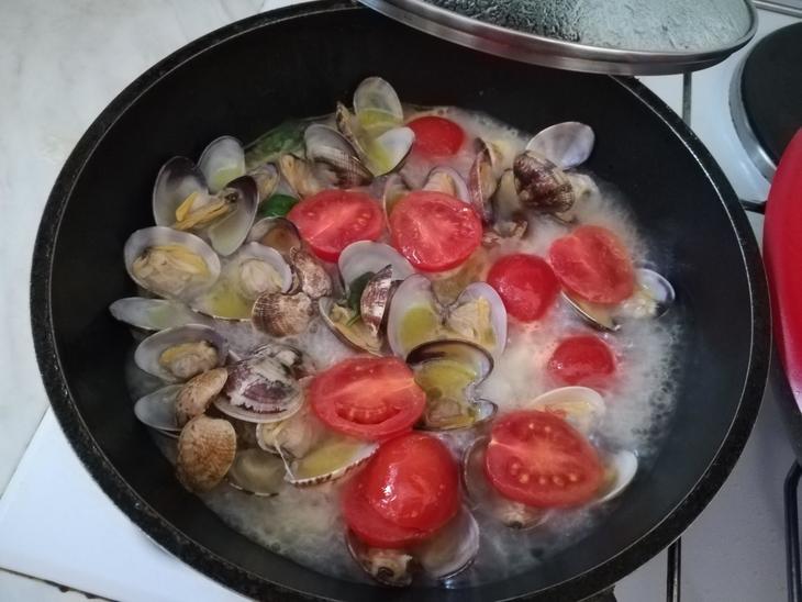 こちらはボンゴレのワイン蒸しプチトマト入りにしてみました。