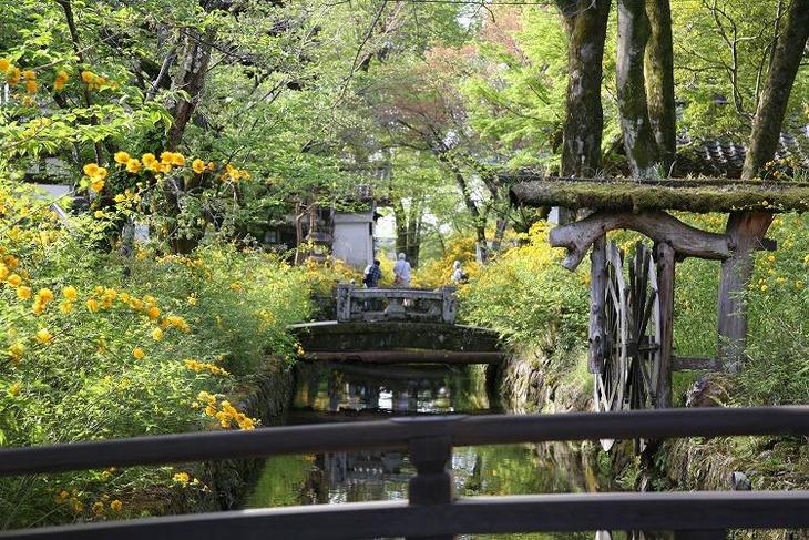 境内を流れる一の井川沿いを中心に数約3000本と言われる山吹の咲く風景は圧巻です。