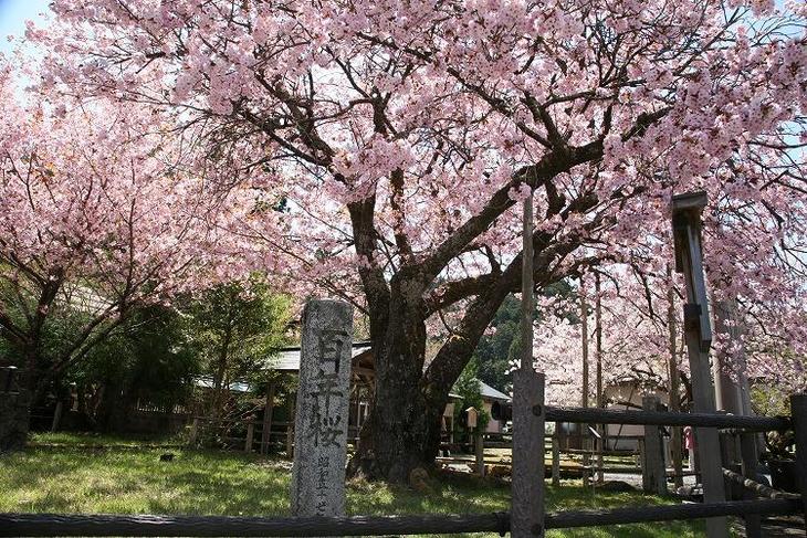 百年桜は春日神社の境内にあり樹齢は推定は300年。