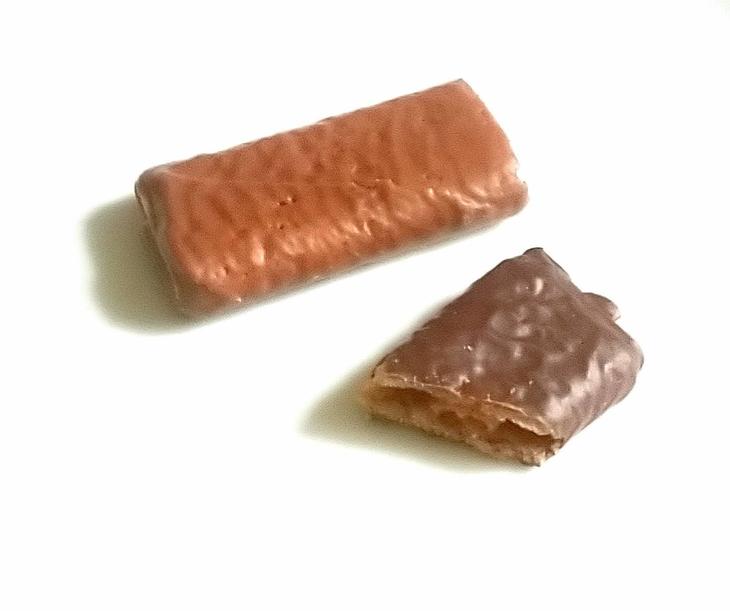 極薄サクサククレープに甘さ控えめのチョコレートを薄~くコーティングしたお菓子。ミルクチョコレートとブラックチョコレートの2種類がミックスされていて両方味わえる欲張りパックです。初めて食べたときは、スーパーマーケットで気軽に買えるのにそのクオリティの高さにびっくりしました。