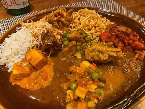 カレーは5~6種類、マトンのビリヤニ、ナン、麺など。