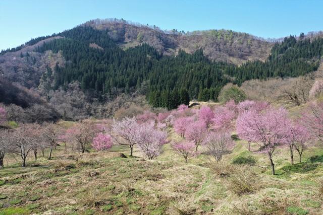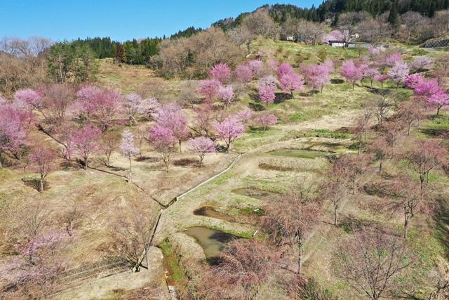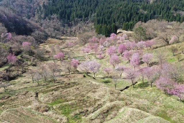 地区の方たちが休耕地に植樹したもので、約120本の桜が時期をずらして咲き誇ります。