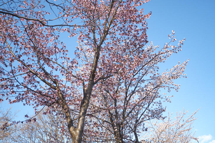 実は毎年、開花宣言前に咲きはじめる桜はあるのですが、今年はいつになく、早々と咲いた桜があちこちにあるようで、今日の日中の暖かさもあり、車で走ってみると、もはや満開では?と思うような咲きっぷりの「エゾヤマザクラ」の木があちこちで見られました。