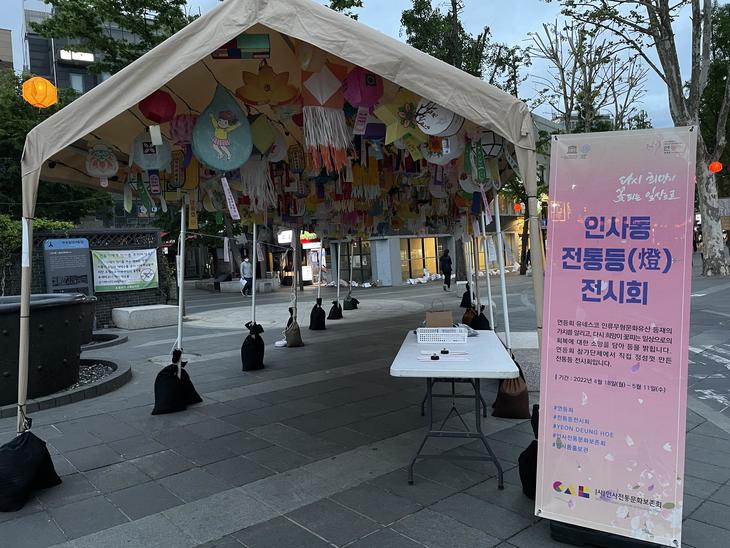 地下鉄3号線 安国駅 6番出口をまっすぐ歩いて行くと、仁寺洞の北側入口に伝統燈の展示がありました。