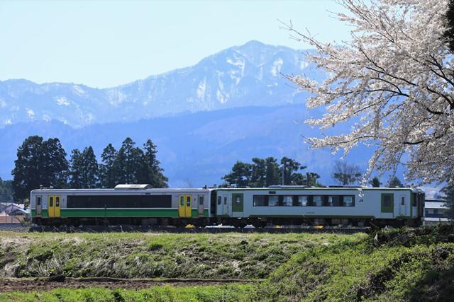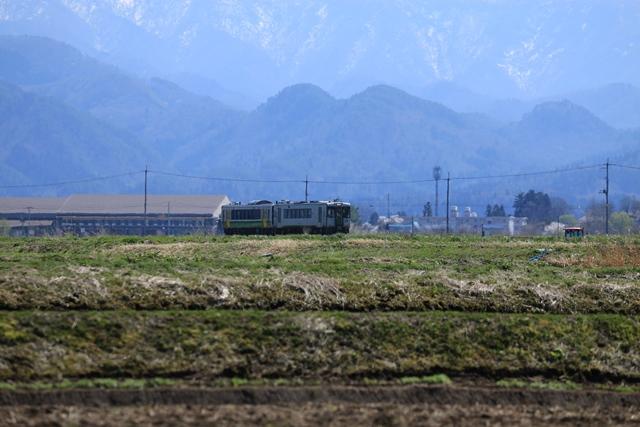 画像左中央奥に写る小さな車両は、只見線の上り428Dです。