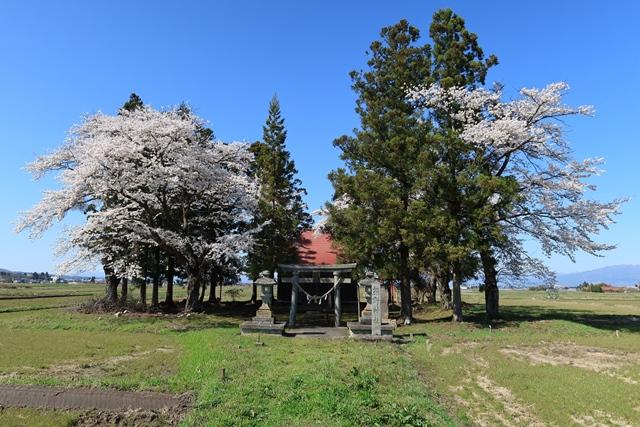 こちらもまた田園地帯にポツンとたたずむ神社で、飯豊連峰や磐梯山とのコラボが美しいスポットです♪