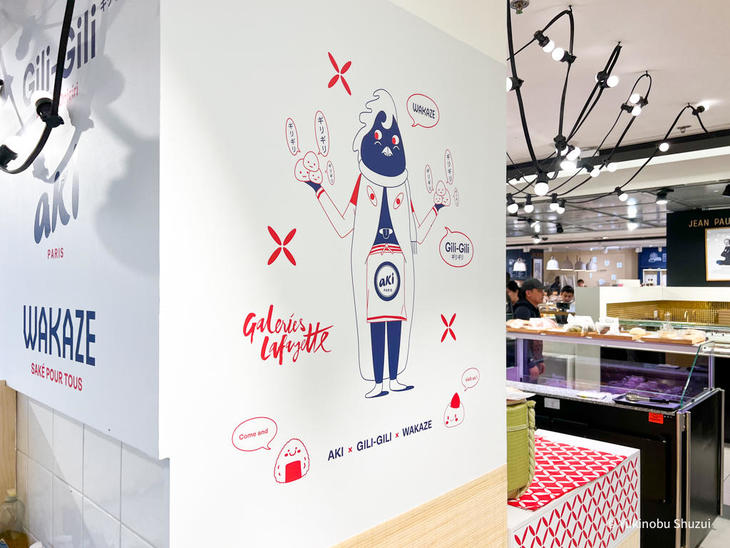 パリのギャラリー・ラファイエット・パリ・オスマン店では、2022年4月20日から同5月31まで、日本の食に関したポップアップが行われています。今回、招待されているのは、パリの日本風ベーカリー「アキ・ブーランジェリー」とパリのおにぎり屋「ギリギリ」、そしてフランスで酒を造る「ワカゼ」です。ギャラリー・ラファイエット・パリ・オスマン店のグルメ館「ラファイエット・グルメ」の地上階で開催されています。