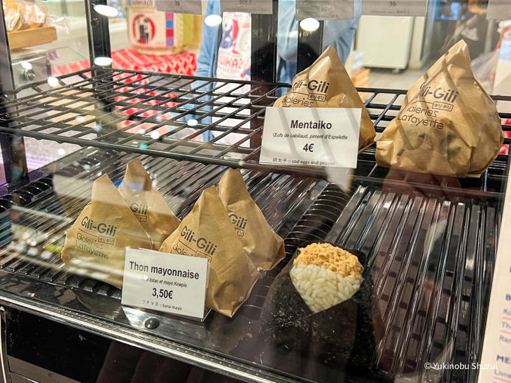 「ギリギリ」はパリ市内9区、モンマルトルより少し南にあるお店。ツナマヨ、鮭といった定番のものから、梅、豚の味噌煮といった具や、シイタケ、バジルとシソなどベジタリアンメニューも揃います。