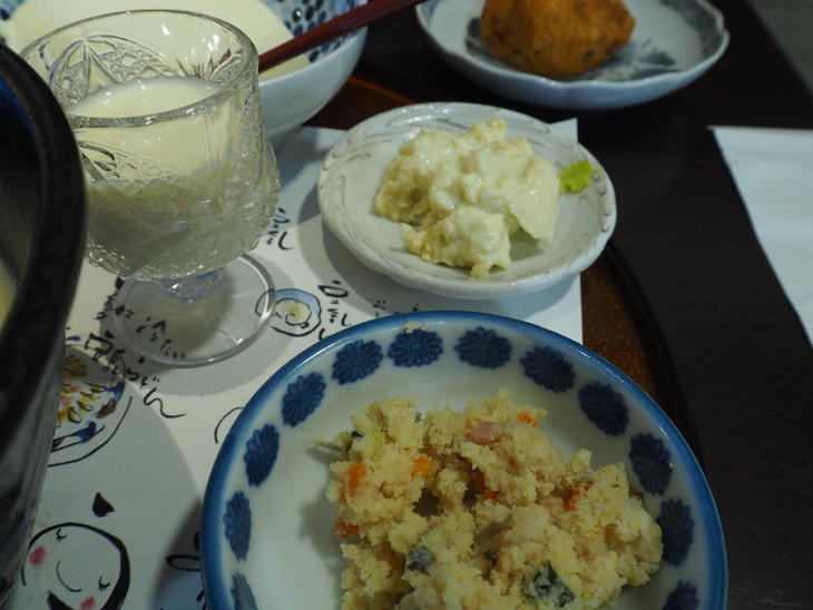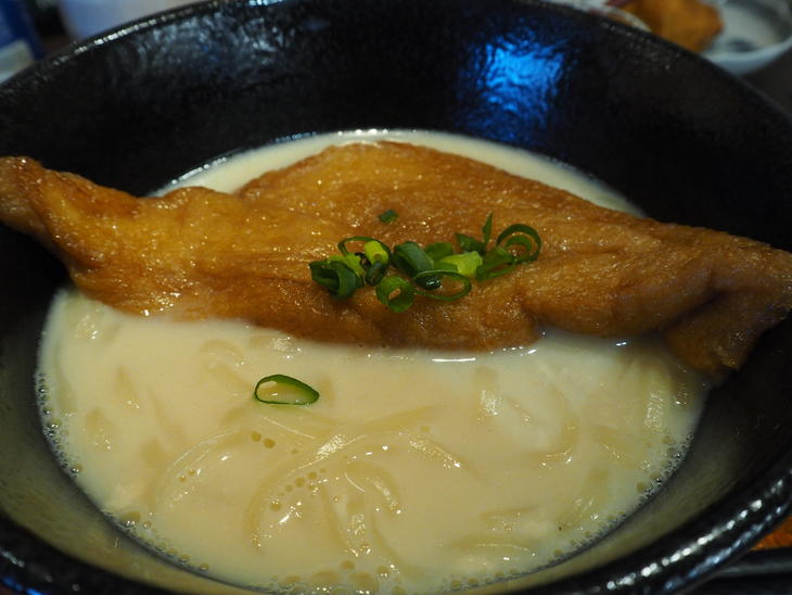 メインは豆乳うどんでした。麺は半透明で柔らかめの麺です。食べなれた岡山のうどんとは違うのですがおいしい!