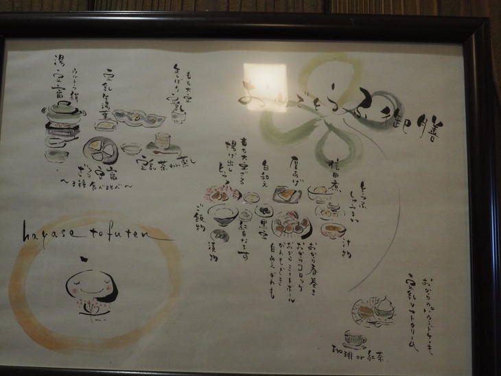 奥にはお座敷もあって、イラストのような「おめでとうふ御膳」を頼むと1日2組限定で使えるみたいでした。