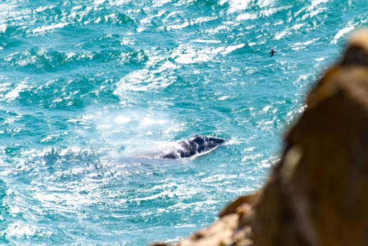 △潮を吹きながら回遊するコククジラ