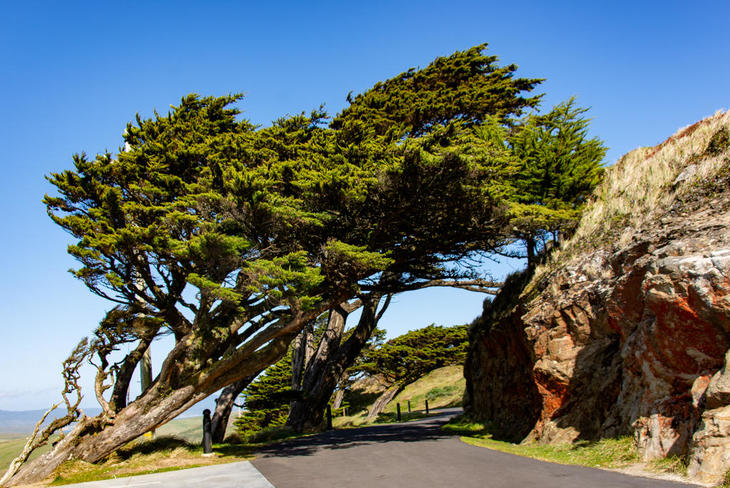 半島の先は、いつも強い西風が吹いているため、木が傾いてしまっています。Leaning Treeと呼ばれています。