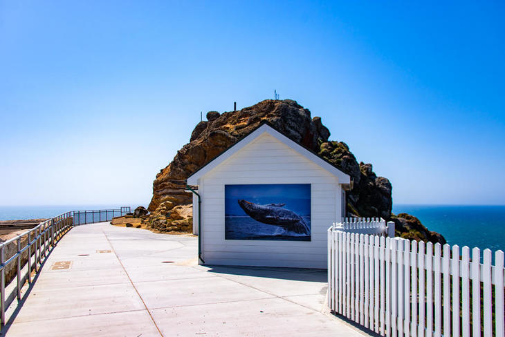 しかし、繁殖地で出産した母クジラは、赤ちゃんを連れてゆっくりと北上するので、4月下旬〜5月上旬がピークになります。おまけに赤ちゃんはシャチに襲われるので、海藻(ケルプ)の茂った陸沿いを通ります。Point Reyes灯台では、本当に目と鼻の先を回遊してくれます。