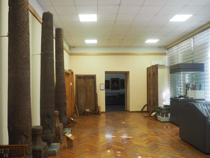 そして彫刻や描画などの木工細工文化について。スルハンダリヤ、フェルガナ盆地でも盛んな文化とのことですが、美しく彫られた木の柱や扉など目を惹く大型の展示物は、ほとんどがヒヴァのものでした。実際ヒヴァを旅行すると、この展示物と同様きめ細かな彫刻がなされた木の柱や扉が歴史的建造物に使われていることに気づくでしょう。