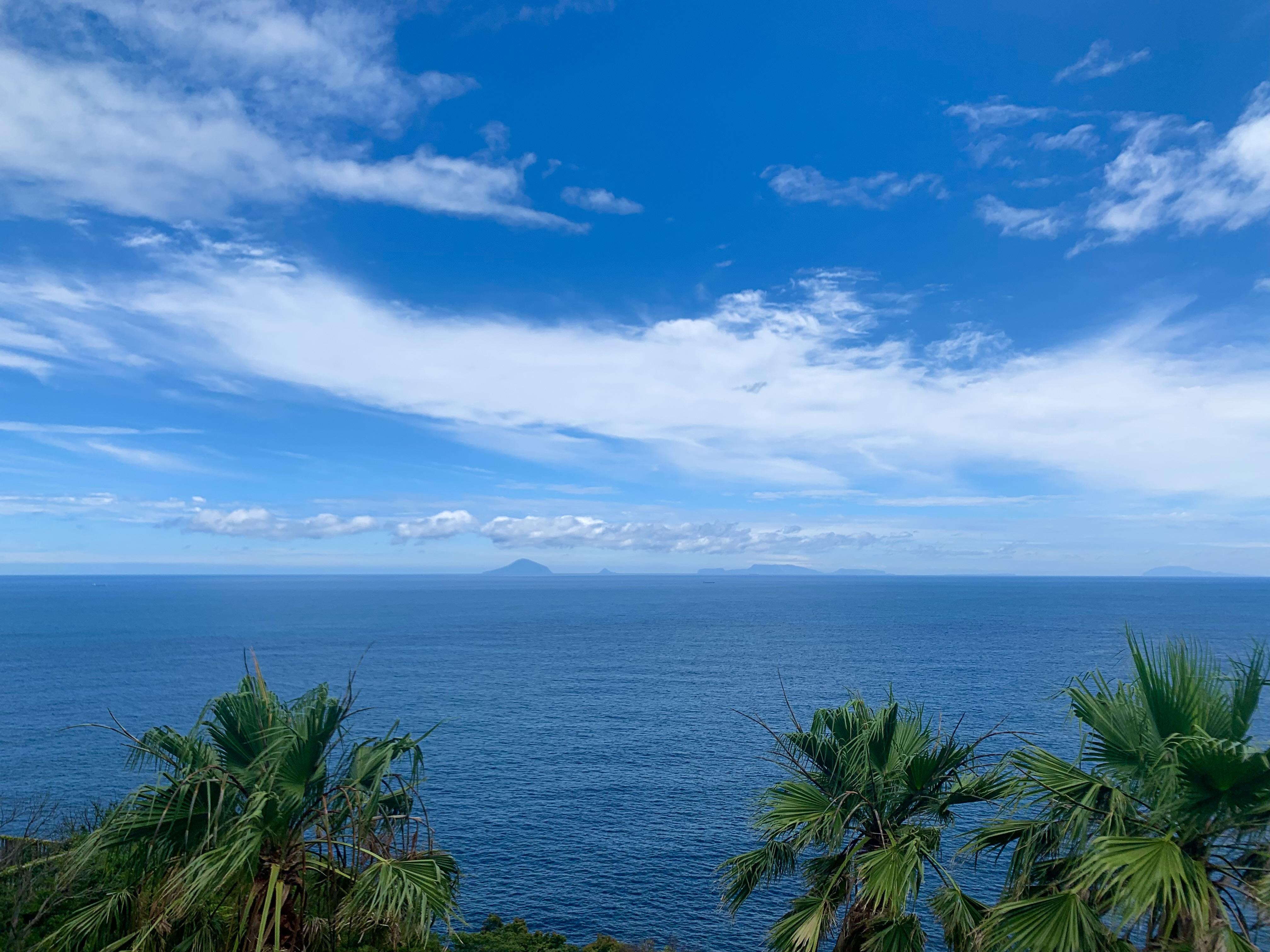 目の前に青い海が広がり、白浜海岸や下田の須崎半島はもちろん、晴れている日は遠くの伊豆七島まで見ることができます。