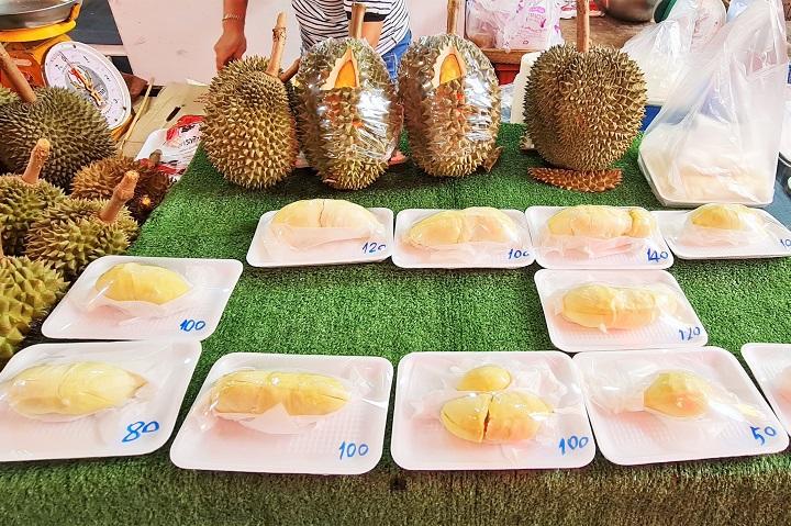 5月と言えば、ドリアンの季節の始まりです。5月3日の朝9時台に、「ตลาดตรอกหม้อ(読み方:タラート・トロックモー、日本語訳:トロックモー市場)」というローカルの朝市を歩いていたら、たいへんお得にドリアンが売られていました。スーパーでも購入できますし、果物の王様と言われるほどの果物なので、タイ滞在中で、気になる方はぜひこの季節に召し上がってみてください。好みが分かれますが、期間限定で開催されることもあるドリアン食べ放題のビュッフェもたいへん人気のようです。