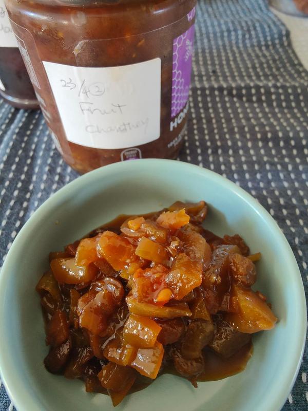 材料: トマト2個、リンゴ1個、玉ねぎ1個、干しブドウ100g前後、生ショウガ(なければ瓶のペーストでもOKです)、さらにナスやズッキーニなど