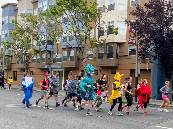 5月15日、サンフランシスコ市内では、大型ランイベントが開催されました。「Bay to Breakers」と呼ばれるランイベントは、年から続く伝統的なイベントで、参加者は市内のサンフランシスコ湾から西端のオーシャンビーチまで7.5マイルのルートを横断します。このイベントが通常のランイベントと違うのは、風変わりであるということ。