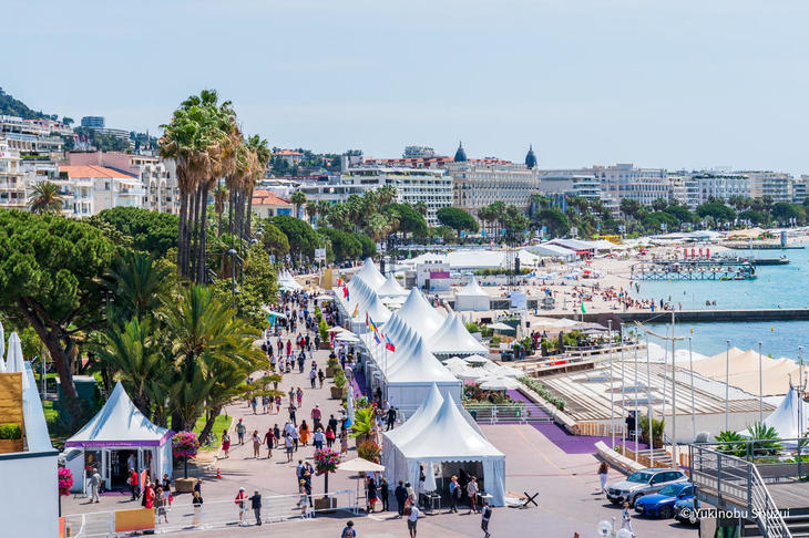 カンヌ国際映画祭は多くが一般向けには開放されていないため、旅行者がパレ・デ・フェスティバル・エ・デ・コングレ内に入ることは難しいものの、町中を歩くだけでも、その雰囲気は十分に感じられます。