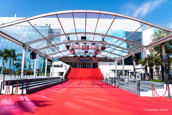 カンヌ国際映画祭のメーン会場となるのが、カンヌ湾に面した海岸に突き出るように建てられている催事場「パレ・デ・フェスティバル・エ・デ・コングレ」です。ここにカンヌの代名詞であるレッドカーペットがあり、上映会や記者会見、そしてフィルムマーケットが行われています。