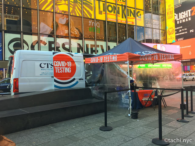 タイムズスクエアにある感染検査場 2022年2月9日