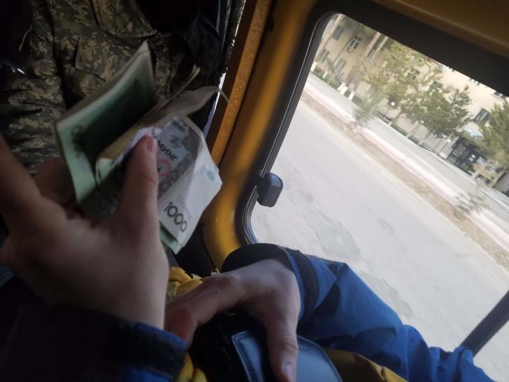 また路線ごとに運賃が違い(市内移動ならたいてい2000~3000スム)、車内に料金が書かれていることもありますが、なければСколько стоит?(スコーリカ ストーイト?:いくらですか?)と尋ねましょう。運賃は運転手に直接支払いますが、後方座席にいるなら前方の乗客に頼んでバケツリレー方式で運賃を渡してもらいます。