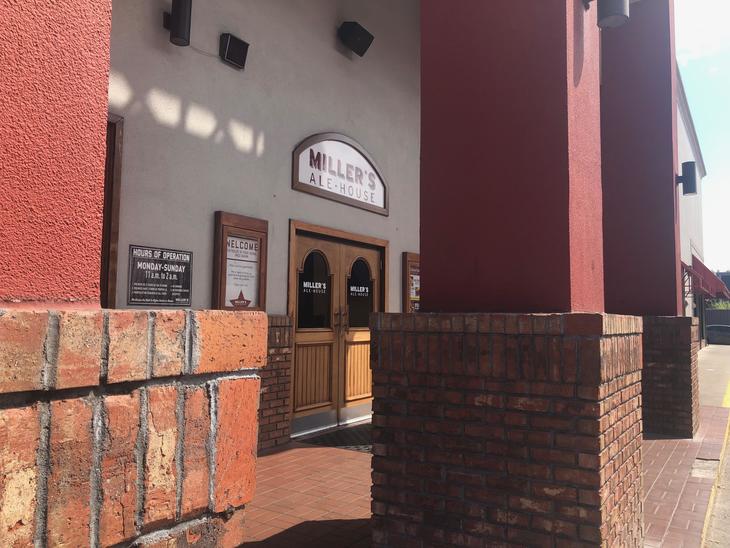 店内の真ん中あたりにぐるっと囲われたバーカウンターがあって、たくさんのビールやその他のお酒のラベルが見えその頭上にはいくつものテレビのスクリーンがあります。