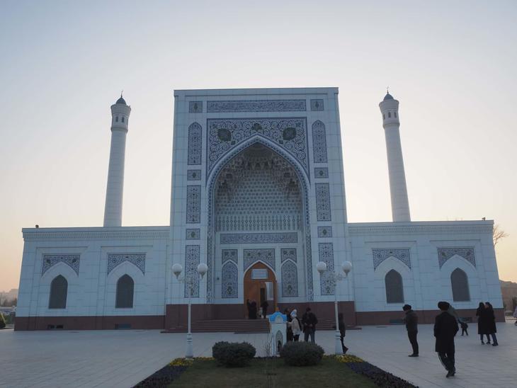 インパクト抜群の外観は発展を続けるタシケントの象徴の一つとされているようで、町を紹介するプロモーションビデオなどにもたびたび登場します。レンガ造りではなく、大理石でできたこのような白いモスクはウズベキスタンではなかなかお目にかかれません。鮮やかなブルーのドームとのコントラストも見事です。