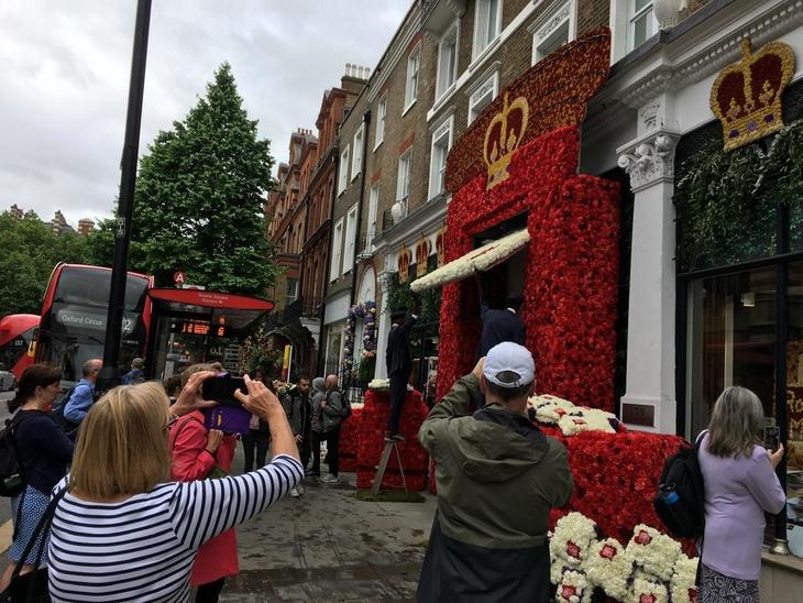 もはや町全体がデコレーションされている感じですが、とりわけ熱気を帯びていた通りは、スローン・ストリート。「チェルシー・イン・ブルーム」の開催地で、ほかのエリアと比べても飾りつけの規模や気合が違うと感じました。