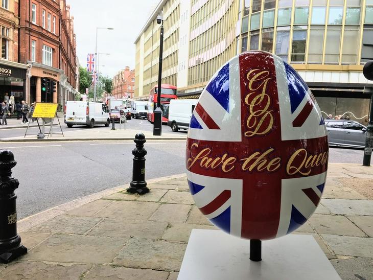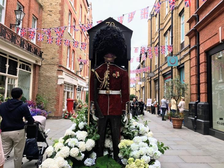 エリザベス女王在位70周年の数字が描かれていますが、遠目に見ないと気づかないことも…。