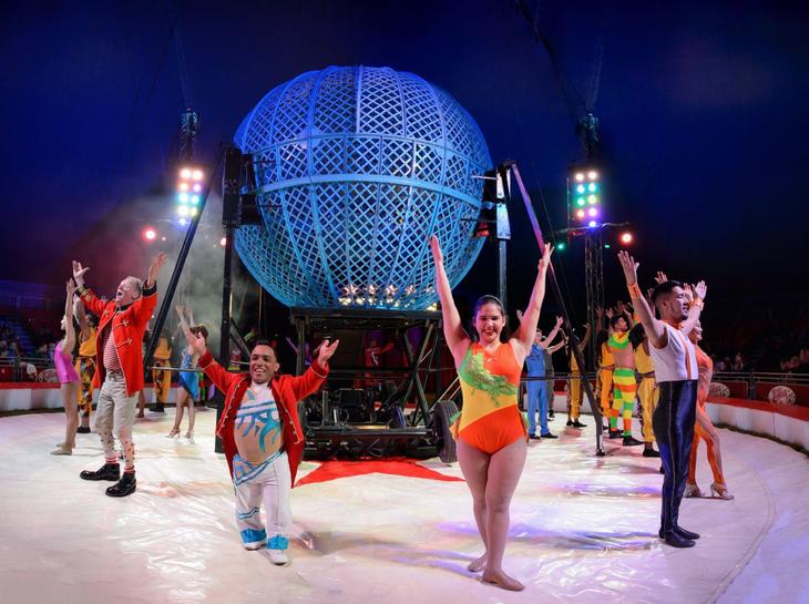 なかでもトリを務める「死の球(Globe of Death)」という、少々物騒な演目はブラジル人グループによるスタントショーです。開幕当初から舞台脇にあった巨大な球状の金網が中央に運ばれてき、いったいなにが始まるのかと思いきや、そこにバイクに乗ったパフォーマーが、まるで普通に運転するかのように入っていきました。