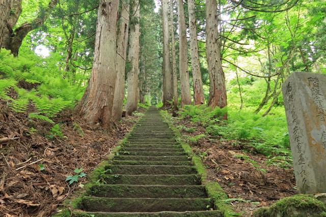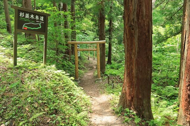 参道は車道を兼ねた広い道と、滝や杉並木を抜ける細い道があります。