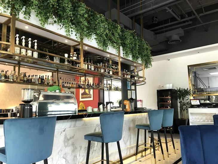 店内中心にはバーカウンターがあります。平日の12時(開店時間)に行ったので、空いていました。