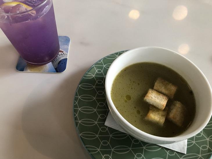 ブロッコリースープは初めて食べましたが、青臭くもなく飲みやすかったです。クルトンもスープの味が染み込んでいてとても美味しかったです。