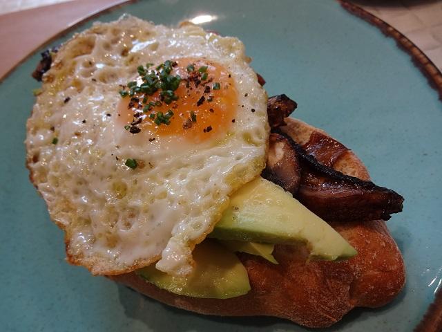 フードメニューも充実してて、こちらはブランチにパートナーが注文したアボカド&卵&マッシュルームのオープンサンド。食にうるさい彼にも大好評でした。