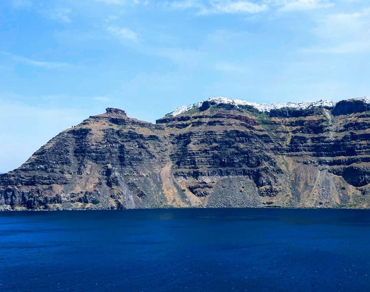 最初の寄港地サントリーニ島が見えてきました。