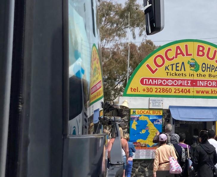 フィラに到着。たくさんのお店やレストランがあり、ショッピングするならここですが、今回、私の目的は島の北側にあるイアでの風景撮影なのでフィラ中心部にあるバスターミナルまで10分ほど歩きます。