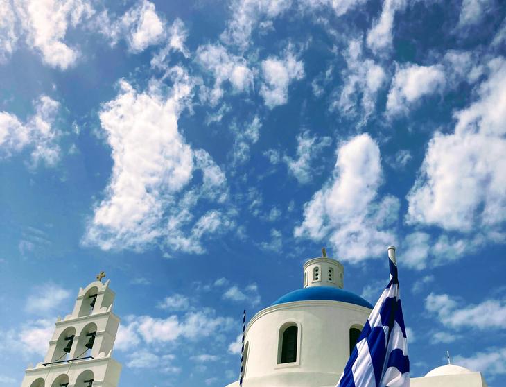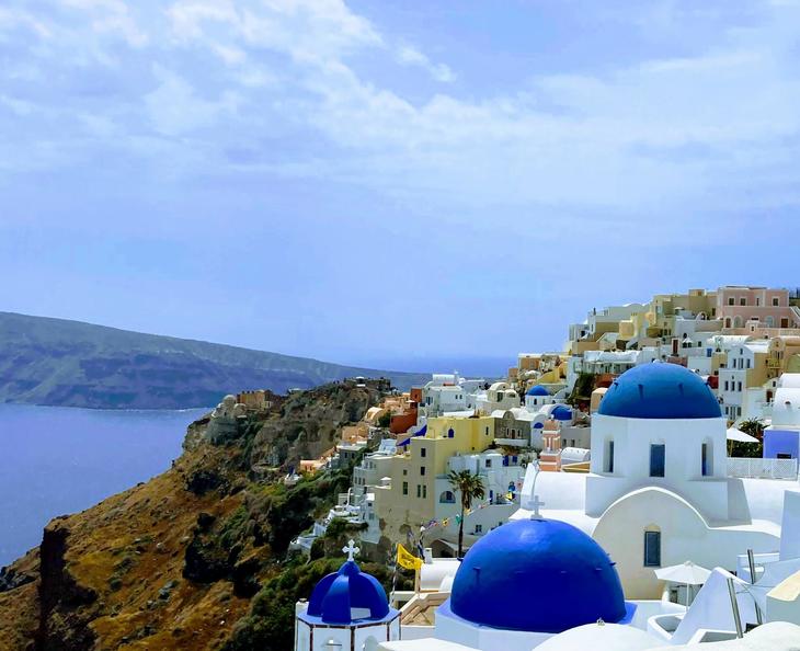 白と青のコントラストが美しいサントリーニ島。