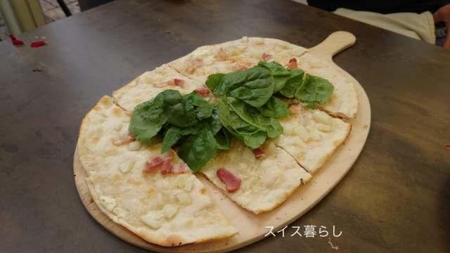昼食は、ホットドックやフラムクーヘンをかって、テラス席で食べました。
