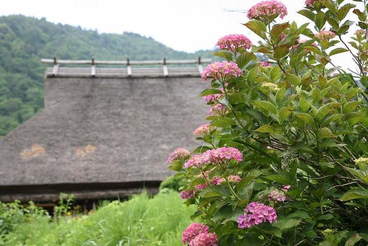 アジサイ咲く「美山・かやぶきの里」です。