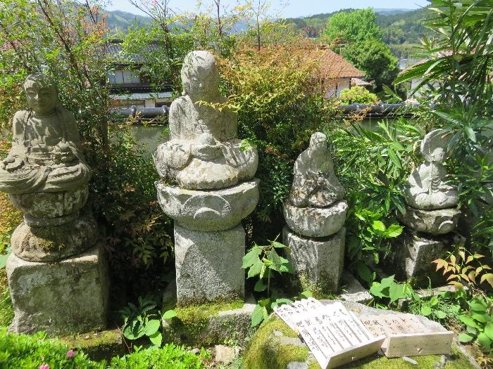 「興雲寺」で見かけた六地蔵。天上尊、人間尊、地獄尊、修羅尊、餓鬼尊、畜生尊と書かれたロウソク立てが置かれていましたがお地蔵さんとの並びが合っているのか不明です。ちなみに、六体の地蔵尊は、六道(地獄、餓鬼、畜生、修羅、人間、天上)のどこにでもいて救済の手をさしのべてくれると言われています。
