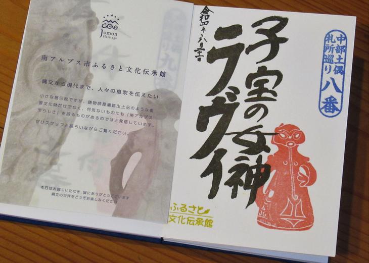 山梨県南アルプス市「南アルプスふるさと文化伝承館」(通称「み・な・で・ん」)で「三十三番土偶札所巡り」の御朱印をいただいてきました。トップの写真は円錐形土偶「子宝の女神ラヴィ」。国指定重要文化財です。