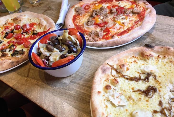 ほかのメイン料理には目もくれず、さっそくサラダとピザのみを3種類注文しました。出てきたものは薄型の生地がほどよく、目にも鮮やかな色とりどりのトッピングがのった、いかにもおいしそうなタイプ!