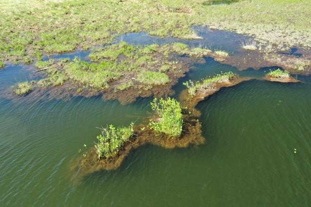 地上からの一枚は、波紋広がるハンノキの水没林(コンデジ手持ち)