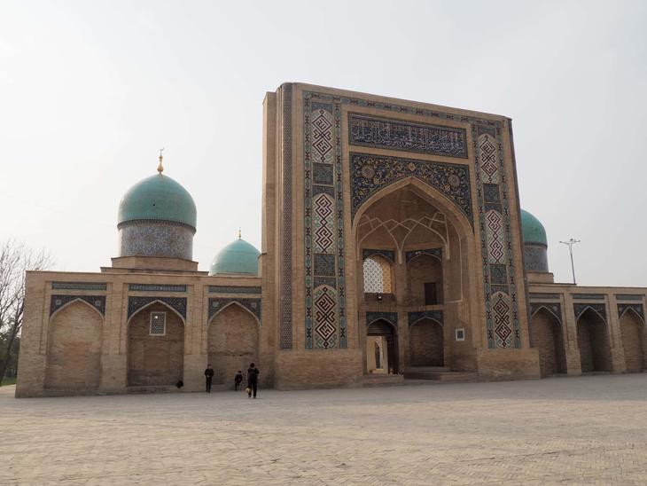 この迷路のような町並みを通り抜けた先にあるのは、タシケントで最も重要なモスクのひとつであるハズラティ・イマーム・モスク、そしてハスティマム広場を挟んでかつて神学校だったバラク・ハン・メドレセ。私たちがウズベキスタンと聞いてイメージする青いドームのイスラム建築が、まさにここにあります。時期にもよりますが、夕日がいい具合に当たるとなかなかの眺めになります。
